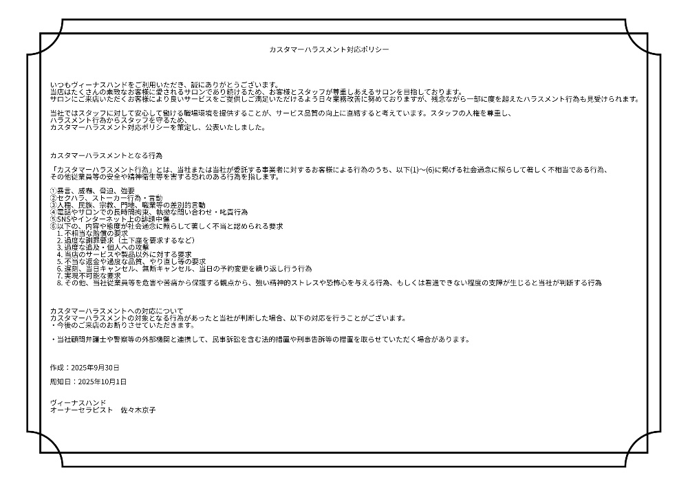カスタマーハラスメント基本ポリシー
